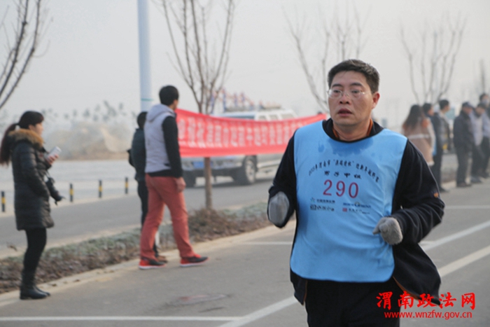随着“砰”的一声枪响,渭南中院参赛选手随着奔跑的人群犹如离弦之箭飞奔而去,大家争先恐后展开激烈角逐,每个人都尽自己最大的努力跑出最好的成绩,沿途观众也在不同路段为选手们加油助威,口号声将比赛推向了高潮,运动员们坚信坚持就是胜利,以重在参与的心态向终点跑去。呵气成霜的严冬里,大家各个汗流浃背,寒冷的天气完全抵挡不住每名参赛选手的热情。敢于拼搏、战胜自我、自强不息的精神在每名参赛选手身上都体现的淋漓尽致。