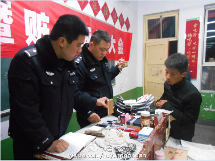 澄城罗家洼派出所组织民警对辖区麻将馆进行集中清查。