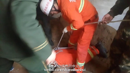 【男子不慎掉地窖 白水中队成功救援】近日,白水县西固镇一男子不慎掉进地窖,白水消防中队迅速出动赶往现场,发现该男子被卡在离窖口约5米处,从井口仅能看见被救人员的 手,从窖口隐约能够听到男子喘息的声音,情况相当危机。消防官兵立即制定营救方案,经过长达3小时的艰难救援,该男子终于被成功获救。