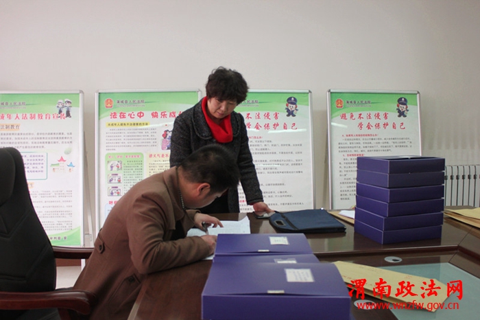 工作汇报结束后,蒲城法院干警按照考核组的安排,对2015年法院工作的总体评价及法院领导班子、领导干部的德勤能绩和廉洁自律情况进行了民主测评。最后,考核组成员还在三楼会议室查看了目标任务、党建工作、党风廉政建设三方面的资料。