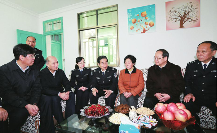 1月8日至10日国务委员、公安部部长郭声琨在江西调研。图为郭声琨看望牺牲民警张隆贵的家属,详细了解他们的生活工作情况。张建鑫 摄