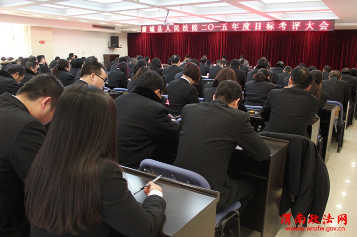 会上,渭南中院政治部副主任刘文鼎同志进行了考核动员和安排部署。他提出,一是思想上要高度重视。全体法官干警要站在讲大局的高度,切实重视这次考核、考察工作,要抱着对组织、对单位负责的态度,认真履行好自己的权利和义务。二是行动上要积极配合。每一位法官干警要认真、准确填写各类表格。三是工作上要坚持原则。为了确保考核、考察公正性,考核组将严格按照市中院2015年度考核考察工作方案,认真负责、客观公正地组织进行,严格按照评分标准进行评判,全面衡量2015年度的各项工作,使考核工作真正达到促进工作、鼓励先进、鞭策后进的目的,为市中院党组评价各基层法院全年工作提供真实、客观的依据。