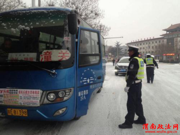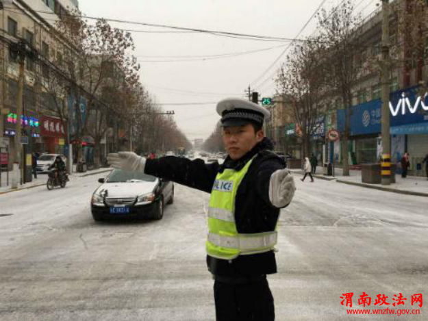 渭南政法网(特约通讯员 汤朗武 刘军峰)2016年元月12日,潼关突降瑞雪;城区交警中队立即启动恶劣天气应急预案。