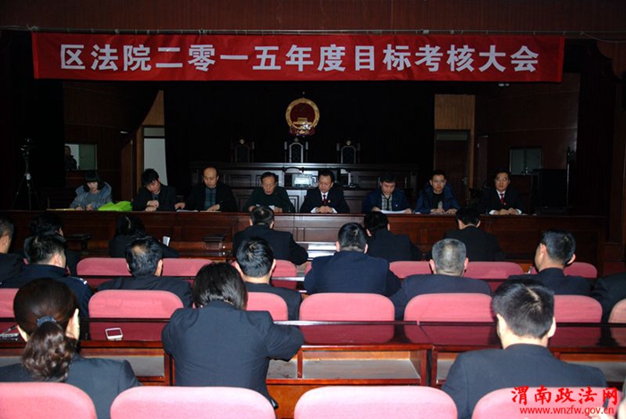 渭南政法网(特约通讯员 郝毅伟)1月14日下午,区目标考核组一行6人在区考核组组长、区委副书记王进文带领下,对临渭法院2015年度工作进行了全面考核。并召开了目标责任考核工作大会,会议由临渭法院党组书记、院长宋建国主持。