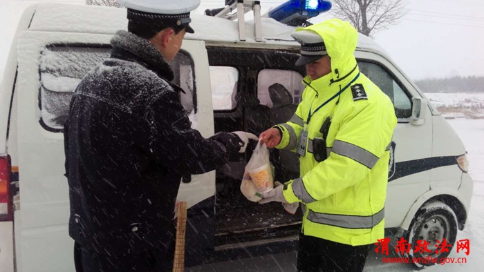 并及时送来早餐,有力保障执勤民警雪天的工作、生活“两到位”。