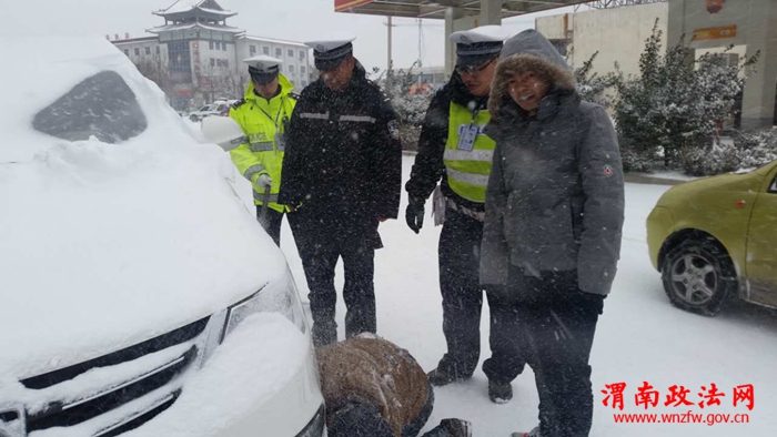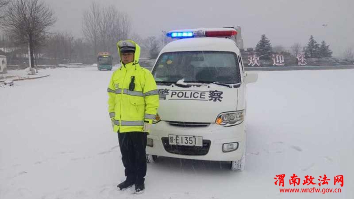 在各执勤点民警在风雪中坚守时,城区中队领导巡查路况
