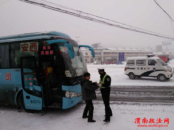 自30日晚开始一直未停,路面积雪已达3厘米以上,道路交通受到极大影响。31日早,城区交警中队立即启动恶劣天气应急预案,分别在县城东坡口、四知街东转盘设立捡查点,严查出城下坡车辆防滑链,尤其是客运班车。