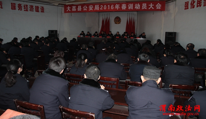 渭南政法网(特通讯员 杨兆林 李晓艳)2月15日,大荔县公安局召开全警动员会,2016年春季整训活动拉开帷幕。