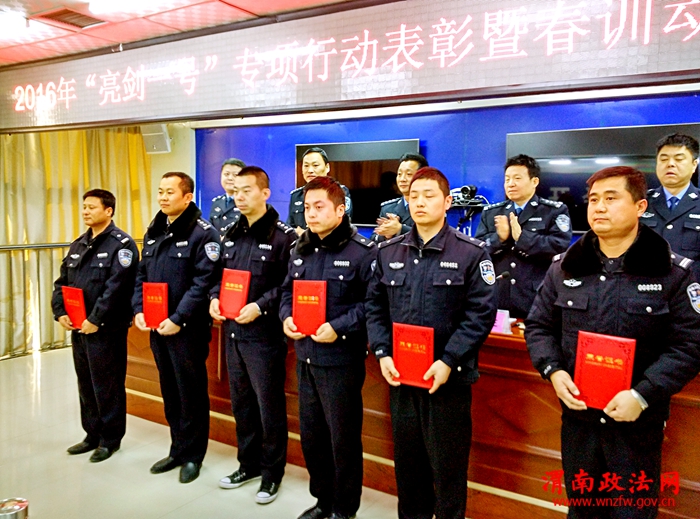 渭南政法网(特约通讯员 刘孟德)2月16日上午,经开分局召开大会,表彰2016“亮剑一号”专项行动的先进集体和个人,安排部署分局春训工作,凝聚警心,激励斗志,加力加油,为今年公安工作开好头、起好步换挡提速。经开区党工委委员、公安局长杨卫军参加会议并讲话,要求全体民警要认真学习,创新思路,主动作为,精心谋划好2016年公安工作,为推动新常态下全区经济社会持续健康发展提供有力的社会治安保障。
