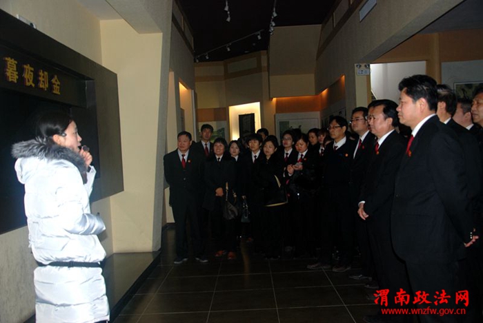 杨震廉政教育基地历史氛围浓厚、建筑肃穆庄严。大家在院党组的带领下,认真参观了馆内的大量珍贵历史图片、资料、实物,详细了解了东汉太尉杨震一生为官清廉、不谋私利、疾恶如仇、刚正无私的品质和崇高的精神。在参观现场,大家认真观看了利用幻影成像技术放映的廉政教育片《暮夜却金》,《暮夜却金》形象地刻画了“天知、神知、子知、我知”的“四知”寓意,再现了“四知先生”杨震清廉为官、流芳百世的感人事迹,让参观的法官干警在身临其境中接受教育。