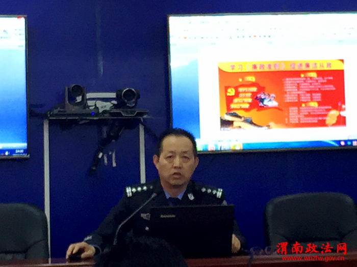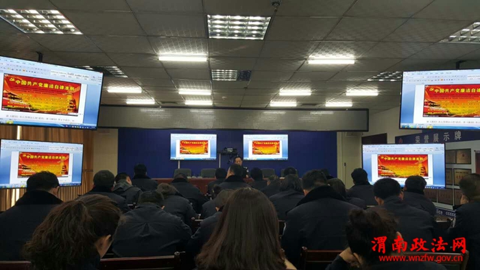 渭南政法网(特约通讯员 刘孟德 )2月17日下午,经开分局学习贯彻《中国共产党廉洁自律准则》和《中国共产党纪律处分条例》培训课在分局视频会议上召开。经开区党工委委员、局长杨卫军,政委严蒲生,副局长朱福利、朱纪虎、孙勇斌及中层副科级以上干部、除值班办案的全体民警参加了培训课。