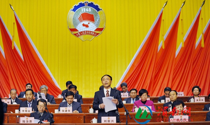刘新兴代表新一届市政协常委会向为渭南市人民政协工作付出心血和智慧、做出重要贡献的四届政协各位领导和全体委员们致以崇高的敬意。他强调,未来五 年,是我市实现追赶超越、决胜小康的攻坚时期,渭南560万人民对全面建成小康社会的美好愿景给政协工作提出了新的要求。各级政协组织要把坚持党的领导作 为政协工作的根本原则,要把促进加快发展作为政协工作的第一要务,要把人民群众对美好生活的向往作为政协工作的努力方向,要把加强协商能力建设作为政协工 作的重要保障,以更加昂扬的姿态,更加严谨的作风,更加务实的作为,实干、创业、为民,为建设富裕和谐文明绿色开放的新渭南努力奋斗。