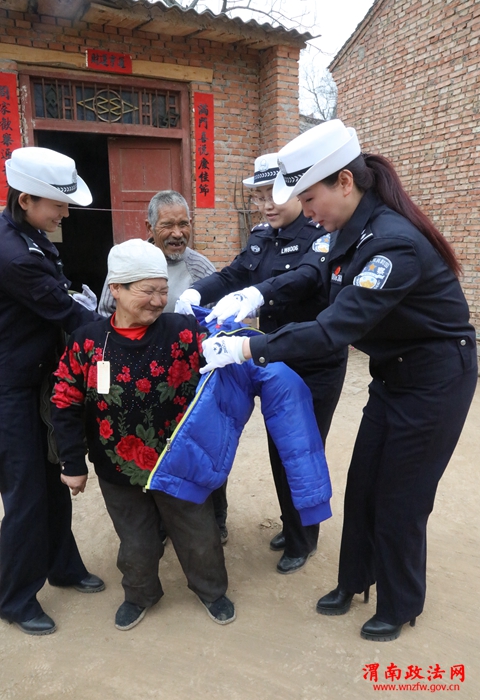 渭南政法网(特约通讯员 张亮)3月7日,妇女节前夕,陕西省渭南市公安局交警支队临渭大队的女警来到大山深处,开展为留守妇女“送美丽,送温暖,送交安,帮脱贫”系列活动。当日为临渭区阳郭镇长坡村7名留守妇女送来了价值2000多元新毛衣和生活用品以及交通安全知识手册,女警们还为留守妇女留下电话、手机号码、二维码,制定脱贫计划,着手从根本上帮助山区留守妇女脱贫。