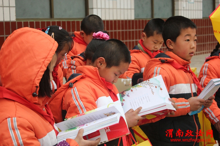 在庙台小学,蒲城法院的“法官妈妈”们不仅为全校学生送上了精美的图书、精心挑选的鞋子等礼物,还详细询问了孩子们的生活、学习情况,对他们进行心理疏导,解答生活中的困惑,讲解法律常识,让孩子们真正感受到母亲般的亲情温暖。校园里,“法官妈妈”们与孩子们促膝交流,悉心呵护着特殊的“花朵”,孩子们开心的欢声笑语还在耳边久久回荡……当孩子们接过“法官妈妈”们送上的故事书等礼物时,连声说着“谢谢法官妈妈”,当场就认真地看了起来,也许是被故事书中的小故事吸引,也许是感受到了“法官妈妈”们的关爱,孩子们的脸蛋上写着慢慢的幸福!