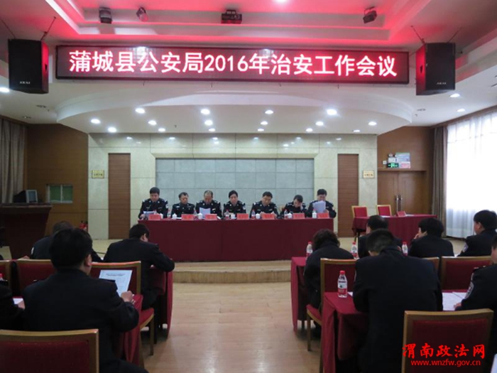 渭南政法网(特约通讯员 耿磊)2016年3月9日上午,蒲城县公安局在蒲城县兴隆酒店召开2016年治安管理工作会议,县局各科室、大队负责人,各派出所所长、教导员、内勤、户籍员,治安大队全体民警参加了会议,会议由政委贾玉胜主持。
