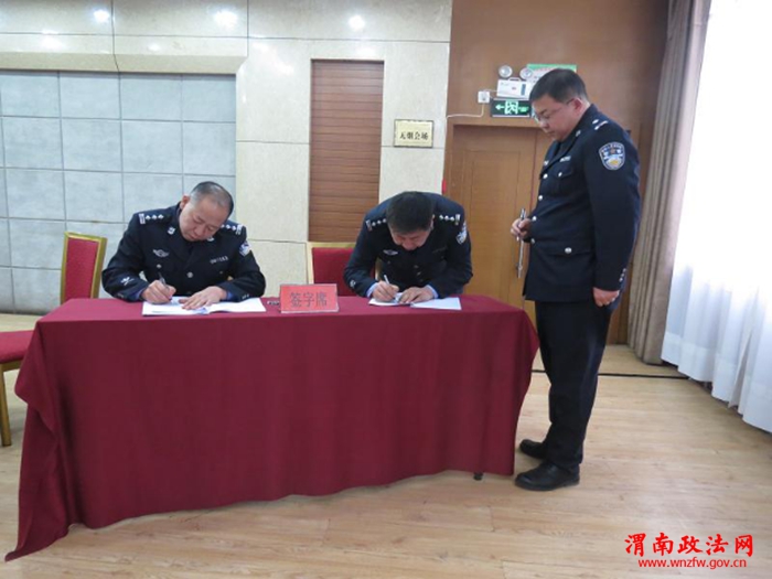 会议首先由副大队长赵进民宣读了《蒲城县公安局2016年户政管理工作实施意见》和《蒲城县公安局2016年城乡社区警务工作实施意见》,副大队长管利军宣读了《蒲城县公安局2016年缉枪治爆专项行动工作实施方案》和《蒲城县公安局2016年治安重点地区和突出治安问题整治工作实施意见》,治安大队长喻伟宣读了《蒲城县公安局2016年全县治安管理工作规划》,随后袁局长与各派出所签订了治安责任书,并有2个派出所负责人做了表态发言。