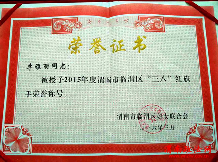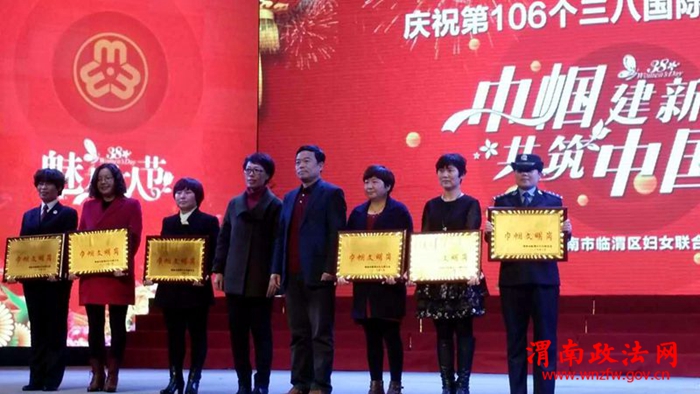 渭南政法网(特约通讯员 高增恩) 3月7日,从庆祝第106个三八国际妇女节临渭区第十六次妇女代表大会暨“巾帼建新功共筑中国梦”文艺演出表彰晚会上传来喜讯,临渭法院立案庭被临渭区妇女联合会授予的“巾帼文明岗”荣誉称号,民一庭李雅丽庭长被授予“三八红旗手”荣誉称号,在特殊节日为临渭法院赢得了荣誉。