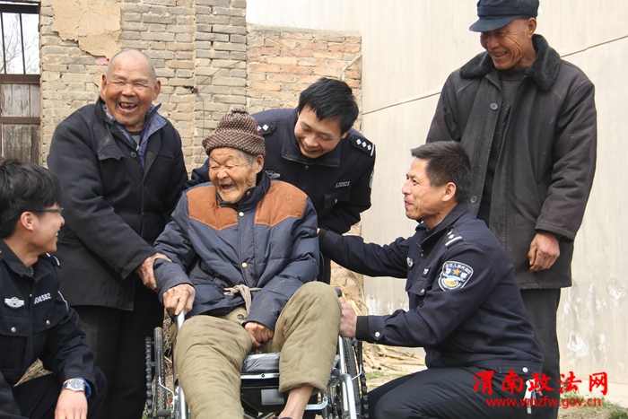 3月8日,民警将崭新的轮椅送给老人时,老人和在场的村邻们脸上挂满激动的笑容。