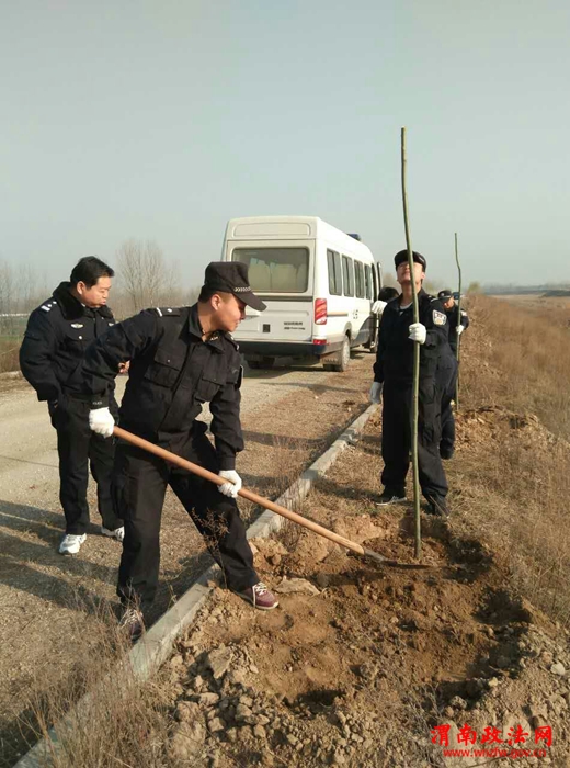 渭南政法网(特约通讯员 李毅)绿杨烟外晓寒轻,红杏枝头春意闹。3月11日,在第38个“植树节”来临之际,为绿化美好家园,保护生态环境,华县公安局组织70余名民警前往渭河大坝开展义务植树活动。