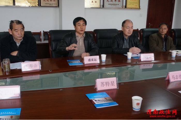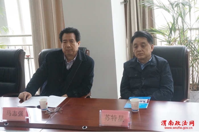 渭南政法网(特约通讯员 田中强 马宇华)3月14日下午,陕西省司法厅马志强副厅长带领基层处苏特星处长、关卫国副处长等人在渭南市司法局薛宏志副局长的陪同下,来到临渭区司法局调研人民调解工作。