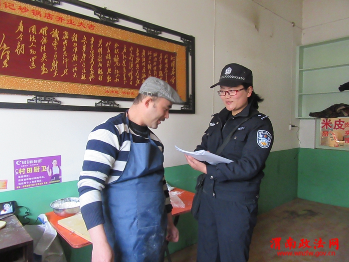 2016年3月15日,金水社区警务室民警在对辖区西大街出租房屋进行日常登记管理时,发现4名新疆维吾尔族男子在西街租住了一间门面房经营新疆馕饼,民警立即上门进行入户走访。在走访中民警了解到,4名男子均为新疆维吾尔族人,于前几日从新疆来到合阳加工售卖新疆馕饼,他们分别来自新疆英吉沙县、疏勒县。登记中,民警考虑到烤馕饼需要用明火,马上向4名男子宣传了安全用火常识,提醒注意消防安全并要求同房东签订了房屋出租治安责任保证书。