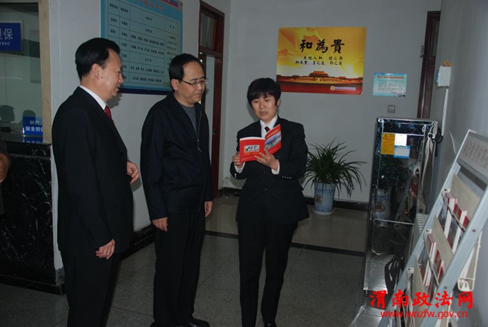 杨林书记在查看有关便民机制和听取汇报、发言后,对临渭法院各项工作给予充分肯定。他指出:近年来,临渭区法院在案多人少矛盾凸显,工作压力前所未有的状态下,不断挖掘内部潜力,创新工作形式,化解社会矛盾,为全区经济社会又好又快发展做出了突出贡献。他强调:临渭法院位置特殊,管辖范围大,工作任务重,要牢固树立“为大局服务,为人民司法”理念,适应和把握经济发展新常态,切实肩负起人民法院在实施“十三五”规划中的重大职责使命。在指出当前法院工作中存在不足的同时,对法院工作提出具体要求。一是要牢固树立大局观念。要紧紧围绕全区中心工作,按照全区提出的“宜居宜游,富美临渭”目标,突出职能优势,以良好的执法理念,加大对城区改造、扶贫工作、旅游开发等中心工作的法律保障和服务,形成法律效果与社会效果的有机统一,并以良好的法律保障和服务不断提升产业升级。二是要抓好执法办案第一要务。要加大民事案件的调解力度,及时化解社会矛盾,并加大对基层调解组织的案件分流力度,发挥和借助社会力量参与矛盾纠纷化解,形成全员参与、全员化解的新格局,有效减少对抗,增加和谐。要加大“宽严相济”的刑事政策落实,对轻微刑事犯罪案件和未成年人犯罪要依法从轻减轻处罚,加大批评教育、回访帮教工作力度,减少社会对立面,促其回归社会。并全力做好涉诉信访案件的排查、预防、调处工作,认真倾听群众意见,逐一制定化解方案,形成矛盾纠纷多元化解新机制。三是要内强素质,外树形象。要加强班子建设,形成标杆引领作用。抓好干警的学习教育培训,加强党风廉政建设,教育引导干警牢固树立五大发展理念,解决人民群众反映强烈的突出问题,在围绕打造首善之区,创建平安临渭,推动“宜居宜游,富美临渭”建设中找准法院工作结合点、切入点、着力点,不断提升司法公信力,努力造就一支政治觉悟高,业务水平专、服务态度好,干净担当的法院队伍。四是要关心爱护干警。把“从优等警”作为一切工作的前提,大力实施暖心工程,突出人文关怀,缓解干警身心压力,多和干警沟通交流,了解干警所思、所想、所需,做好各项保障工作,有效凝聚队伍的向心力,充分调动广大法官干警的主观能动性,激发法官干警的干事创业热情。