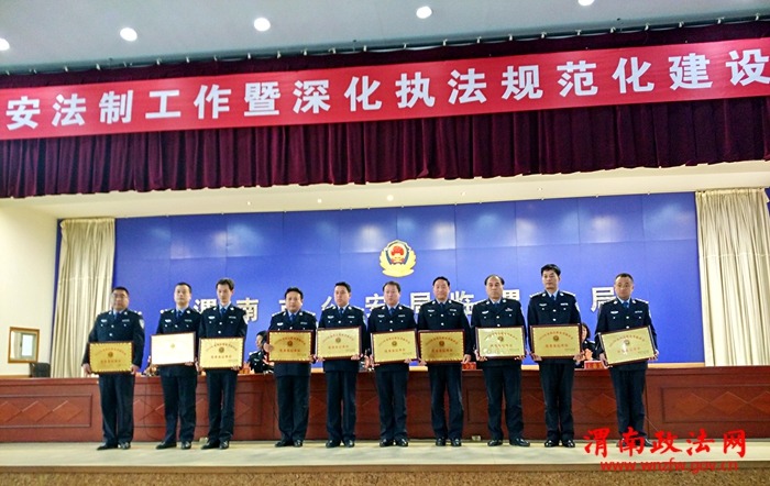 会议学习了《公安机关人民警察执法过错责任追究规定》、《公安机关执法质量考核评议规定》,宣读了2015年度全市公安机关执法质量考核评议优秀单位和个人的决定。临渭分局、富平公安局等单位作了表态发言,合阳县公安局、韩城市公安局、渭南市公安局经开分局获得全市执法质量优秀公安局。