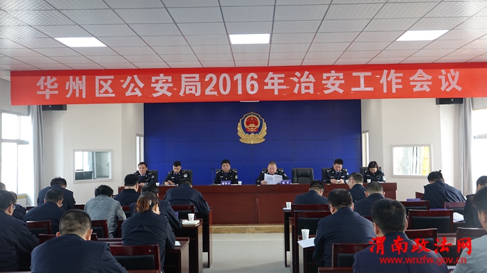 渭南政法网(特约通讯员 李毅)2016年3月18日上午,华县公安局召开了2016年治安工作会议,县局各科室、大队负责人,各派出所所长及治安大队全体民警50余人参加了会议,会议由治安大队负责人郭耀文主持。