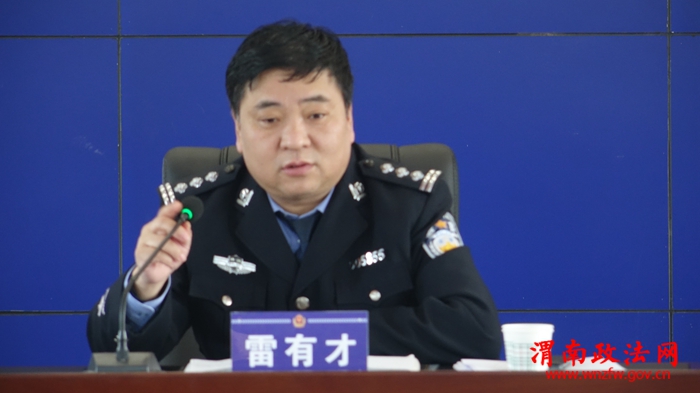 最后,雷有才局长作重要讲话,他强调:一是要认清当前治安工作面临的严峻形式,切实增强治安工作使命感。聚焦防控风险,突出反恐维稳,全力维护全区社会治安大局的持续稳定;二是要创新完善社会治安防控体系,坚持信息主导,细化完善方案,织密防控网络,深化“平安华州建设”,积极创新社会治安防控体系“6+5+X”升级版建设,创造良好治安环境;三是要正视不足,狠抓治安突出问题的整治,集中整治工作中暴露出来的薄弱环节,全面加强各项基础工作和社会治安管控措施,积极主动服务全区工作大局,保障人民群众生产生活的有序进行;四是创新完善考评机制,全局民警要勇于担当主动作为,抓好各项工作任务的贯彻落实,以“踏石留印 ,抓铁有痕”的顽强作风,推动全区治安管理工作迈上新台阶,为“平安华州”建设再立新功。