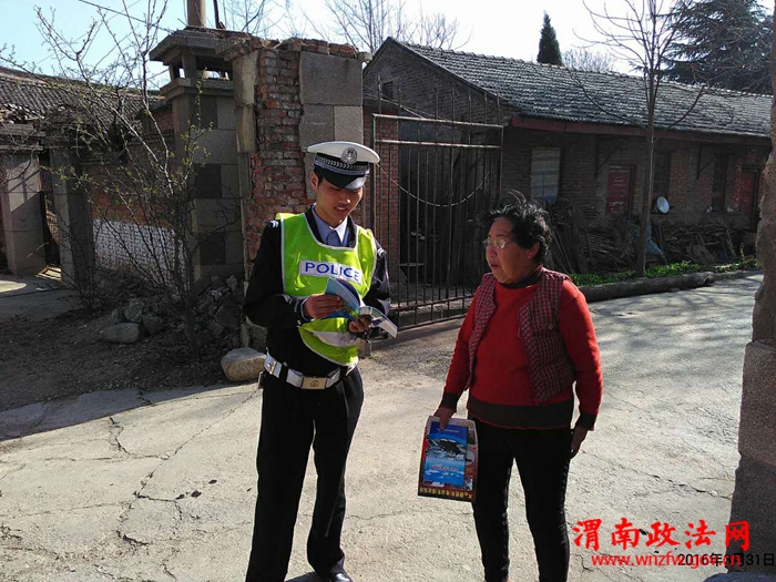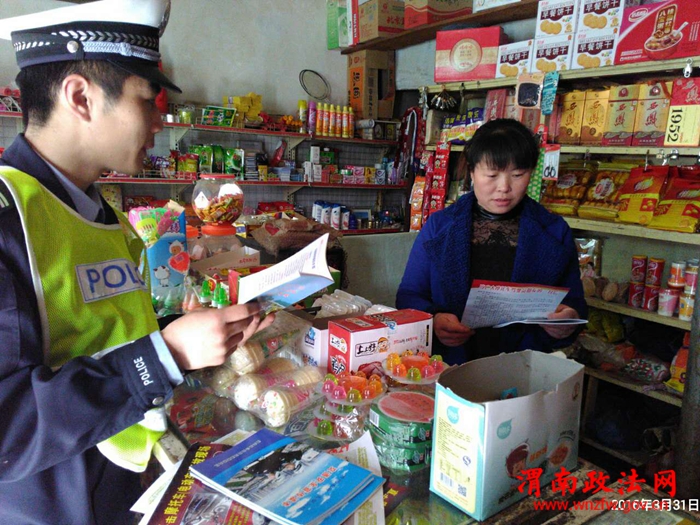 渭南政法网(特约通讯员 夏阳 乔木)2016年3月31日,潼关潼洛交警中队针对清明群众出行特点,积极民警深入辖区安乐镇马吉村向过往群众发放宣传材料,掀起交通安全法宣传热潮。
