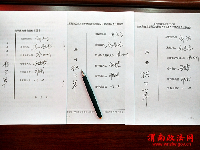 会上,分局对2015年度全区公安机关目标质量考核优秀单位、重点业务考核优秀单位和立功受奖民警进行了表彰;杨卫军与班子成员和各单位负责人签订2016年目标责任考核暨“爱民杯”竞赛活动责任书、党风廉政建设目标责任书、队伍建设目标责任书。