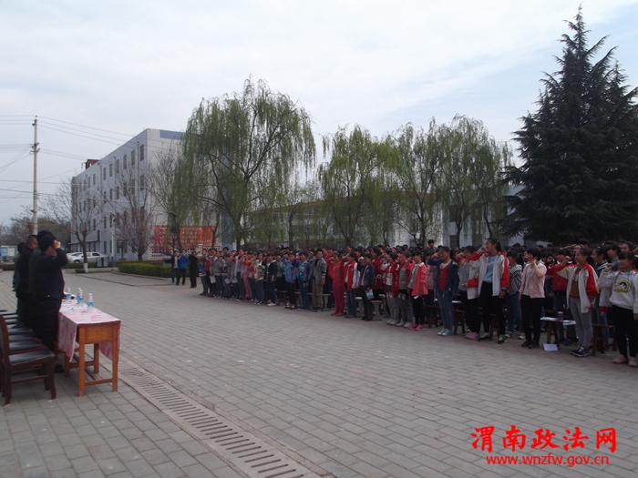 渭南政法网(特约通讯员 康国光)4月1日,临渭区崇凝镇“青春与法同行报告会”在崇凝初中院内进行。会议由崇凝初中副校长李勇主持,崇凝镇党委副书记、综治办主任康国光、崇凝镇司法所副所长王勃、临渭区交警保丰中队指导员李明、崇凝派出所刑侦民警田甲、包片警官盛 武全围绕做守法公民、反邪教、以案说法、道路交通安全法解读分别作法制报告,崇凝初中校长张伟新出席会议并作动员讲话。