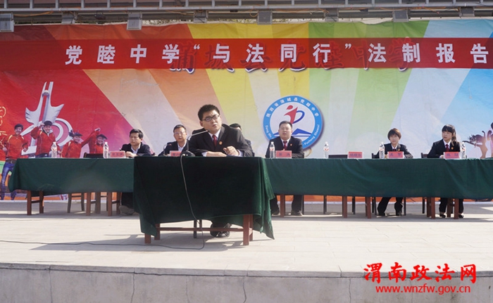 渭南政法网(特约通讯员 孟梦)为进一步深化平安校园建设,营造安全、和谐、文明的校园环境,提高在校师生的安全防范意识及法制观念,使广大学生更好地树立“学法、知法、懂法、守法”意识,有效预防青少年违法犯罪案件发生,3月31日,蒲城法院党睦人民法庭应邀参加了党睦中学“与法同行”法制教育报告会。