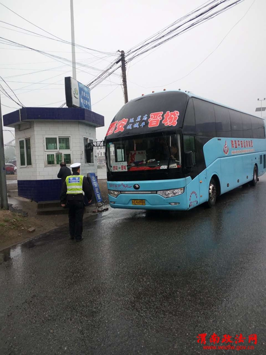 渭南政法网(特约通讯员 王栋炜)4月6日8时,潼关秦东交警中队指导员梁建华带领董宏计、郭朋涛班组民警冒雨在秦东省际交通安全检查站,严查途经秦东省际交通安全检查站客车、校车、危险品运输车,逐车检查逐车登记。