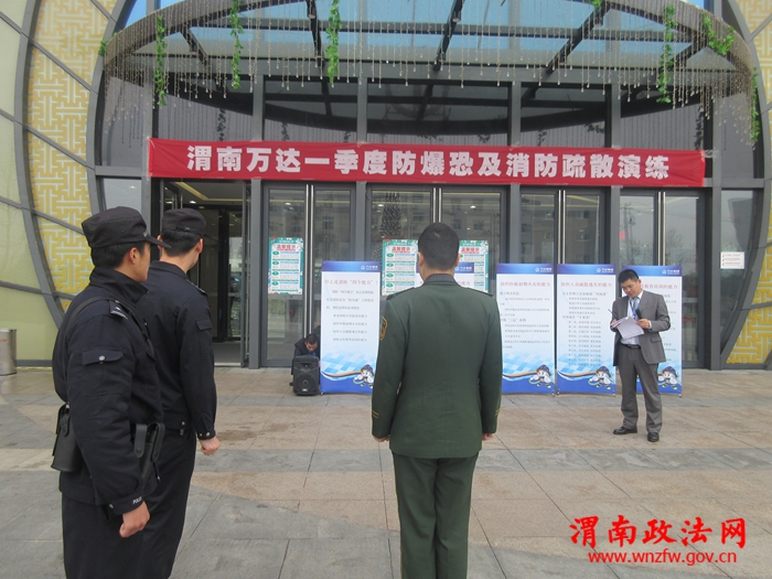 渭南政法网(特约通讯员 闫飞)为了增强人员防暴恐袭击和消防意识,提高公共场所的应急疏散和防火能力,增强人员密 集场所、单位应对突发火灾险情和暴力袭击的的应急处置能力,进一步提高单位员工的消防安全意识和自防自救能力,熟练掌握应急处突和逃生的方法。2016年 3月25日,由白杨派出所牵头,分局消防大队和渭南万达广场配合,在万达广场内部开展了渭南万达一季度防暴恐及消防疏散演练。