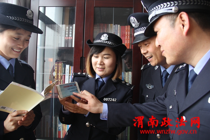 渭南政法网(特约通讯员 刘苍锋)陕西省富平县公安局积极创新学习教育载体,扎实推进学习教育活动,该局以党支部为基本单位,将统一主题和内容传送到互联网和各种新兴媒体平台上,组织引导全局党员民警开展各类党组织活动,推动民警思想政治建设规范化、常态化。图为2016年4月11日,民警正在利用微信公众平台开展“两学一做”学习教育交流。