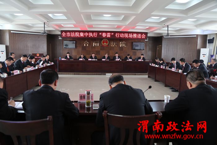 渭南政法网(特约通讯员 张娟)4月15日,渭南市两级法院集中执行“春雷”行动现场推进会在合阳法院召开。市中院党组成员、副院长周稷,各县(区)法院主管执行工作的副院长、执行局长参加了会议,会议由渭南中院党组成员、执行局长王积良主持。