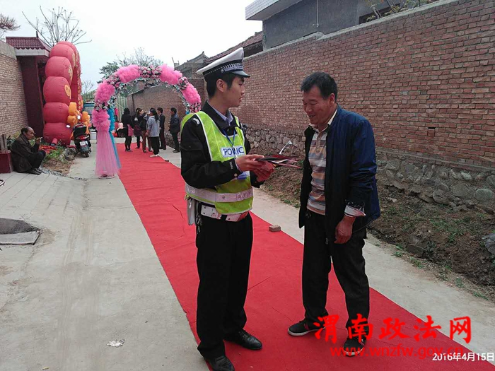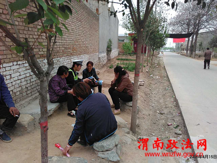 民警来到辖区安乐镇中军帐村,加强农民群众交通安全意识,与老百姓面对面宣传交安法,宣传交通安全知识和道路交通安全法规。