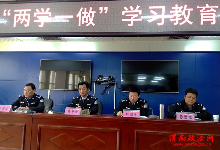 杨卫军局长指出,“两学一做”学习教育是贯彻全面从严治党要求的重要部署,是推进思想政治建设常态化制度化的重要实践,是推动管党治党工作向基层延伸的重要举措,全体党员特别是党员领导干部要切实深化思想认识,把“两学一做”学习教育作为当前和今后一个时期党建工作的首要政治任务,进一步增强做好工作的责任感,不折不扣开展学习教育,认真落实好各项工作要求。一是要提高思想认识,夯实领导责任。各单位要把分局关于“两学一做”学习教育的要求与各单位实际紧密结合起来,创新工作思路,研究具体措施,使学习教育更具特色、更有创意、更富实效。二是要坚持领导带头,发挥模范带头作用。各支部书记要发挥示范带动作用,积极探索创新,带头谈体会、讲党课。三是要突出公安特色,服务中心工作。结合公安工作实际,深入基层,了解社情民意,做好各项工作,以实际行动服务经开区社会经济健康快速发展。