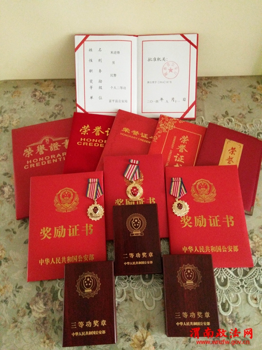 米进锋自参加公安工作以来,先后任刑警大队、特警大队、派出所协警和文 职内勤,派出所、刑警大队民警、中队长、指导员。从一名协警、文职到一名人民警察,他始终坚持满腔热忱,务实苦干,不怕牺牲。十多年来,他直接破获各类刑 事案件1000余起,查处治安案件1000余起,为群众挽回损失1000余万元。荣立个人二等功一次;荣立个人三等功两次;连续两年被评为渭南市全市优秀 民警。获渭南市公安局嘉奖一次,富平县公安局嘉奖一次、评为优秀政工干部。这一个个荣誉后面无不倾注着米进峰同志的智慧、艰辛以及对工作的满腔热血,这一 个个荣誉无不折射出他对党对人民,对公安事业始终忠贞不渝的人生轨迹。