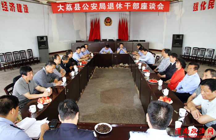 渭南政法网(特约通讯员 刘海滨 杨兆林)5月9日,大荔县公安局召开退休干部座谈会,组织“老公安”回警营座谈讨论当前社会治安和公安工作,为公安队伍建设和公安工作献计献策。
