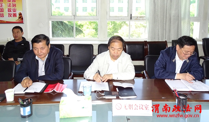 渭南市委政法委副书记、市委维稳办主任林跃,市委政法委副书记、610办主任何会民参会,市委政法委副书记、市综治办主任贾重新主持。记者 白新艳 摄