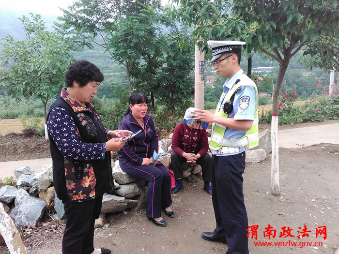 渭南政法网(特约通讯员 汤朗武 夏阳 乔木)6月3日上午,潼关交警潼洛中队为加强“三夏”期间辖区道路交通安全管理工作,结合当前开展的第二季度预防重特大交通事故等专项整治工作,组织民警深入辖区各村组,对农民群众进行交通安全宣传教育。