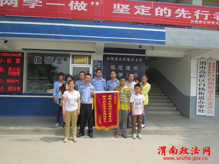渭南政法网(特约通讯员 闫飞)近日,白杨派出所民警千里奔袭,深入山西省大同市成功解救一名被拐骗至此地,并误入传销窝点的未成年少女逃出传销组织的魔爪。6月6日上午,少女及其家人将一面锦旗送到白杨派出所,对民警不辞辛苦,千里驰援解救其跳出传销深渊的行为表示衷心的感谢。