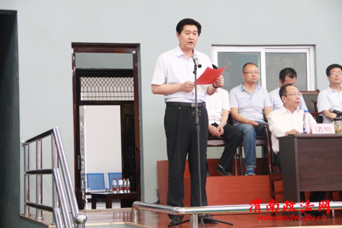 图为县委常委、政法委书记李扩向运动会致辞