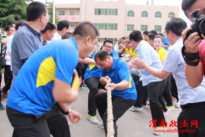 图为法院干警进行拔河比赛