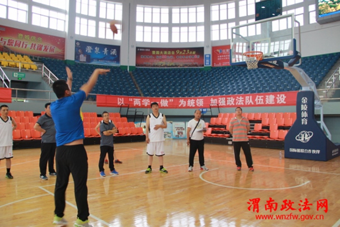 图为法院干警定点投篮比赛