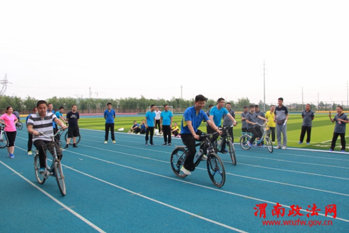图为法院干警进行自行车慢骑比赛