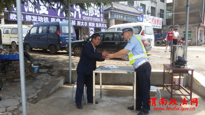 渭南政法网(特约通讯员 汤朗武韩立朋)6月24日,潼关秦东交警中队在流动警务室的旁边设立了“便民服务台”,为过往的司机和路人提供便利,让回家之路平安温暖。
