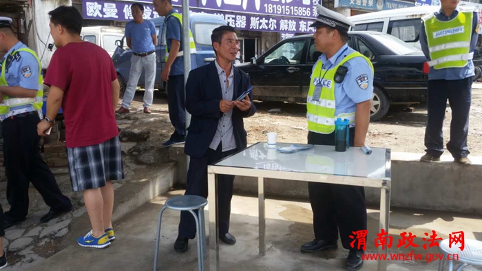 民警在服务台,一边和等候车辆的群众唠家常,一边向他们宣讲交通安全常识,提醒他们要注意交通安全,不疲劳驾驶、酒后驾驶、超速行驶,驾乘摩托车要戴好安全头盔,驾乘小车要系好安全带,要杜绝乘坐超员客车、载货汽车和报废车辆。